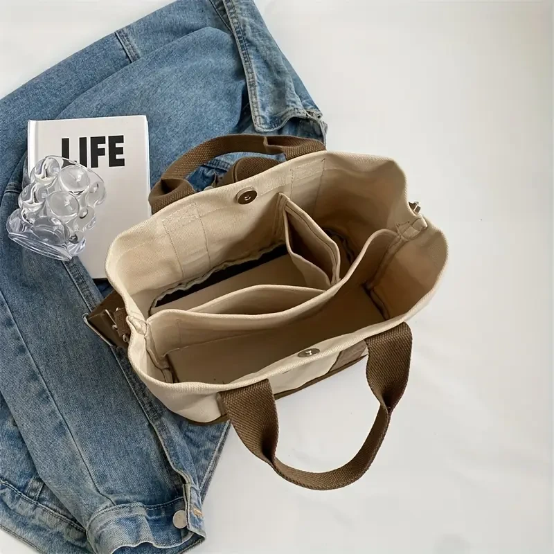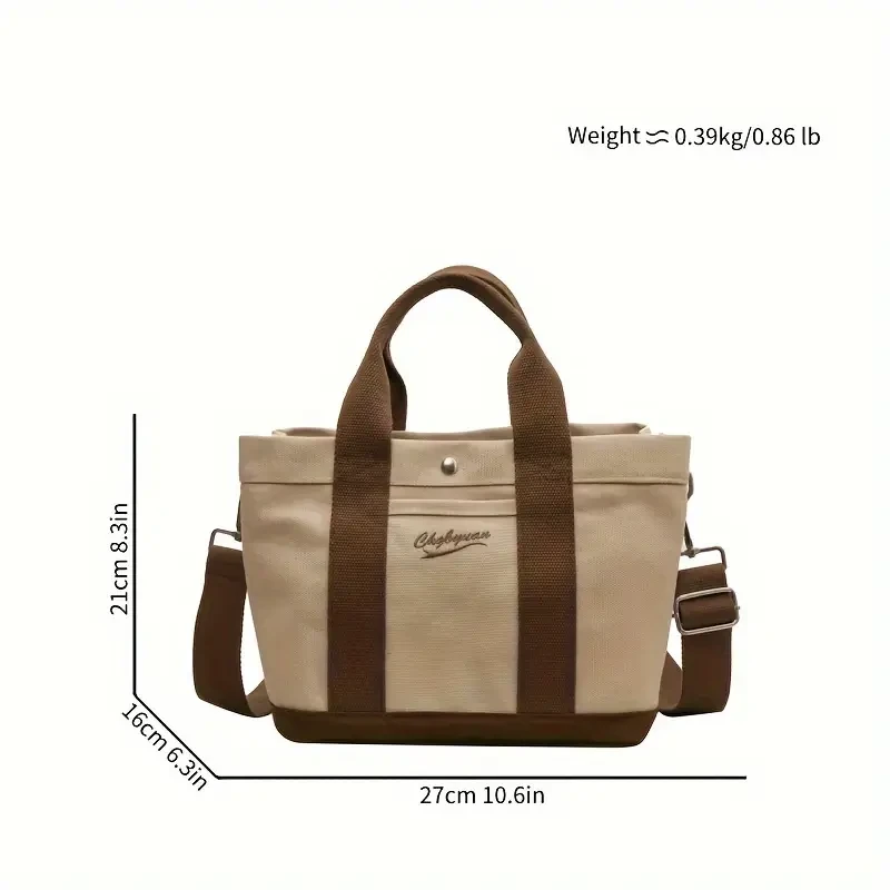 Chic Color block Canvas Tote Bag with Adjustable Strap - Casual Shoulder Handbag for Women, Magnetic Closure.
