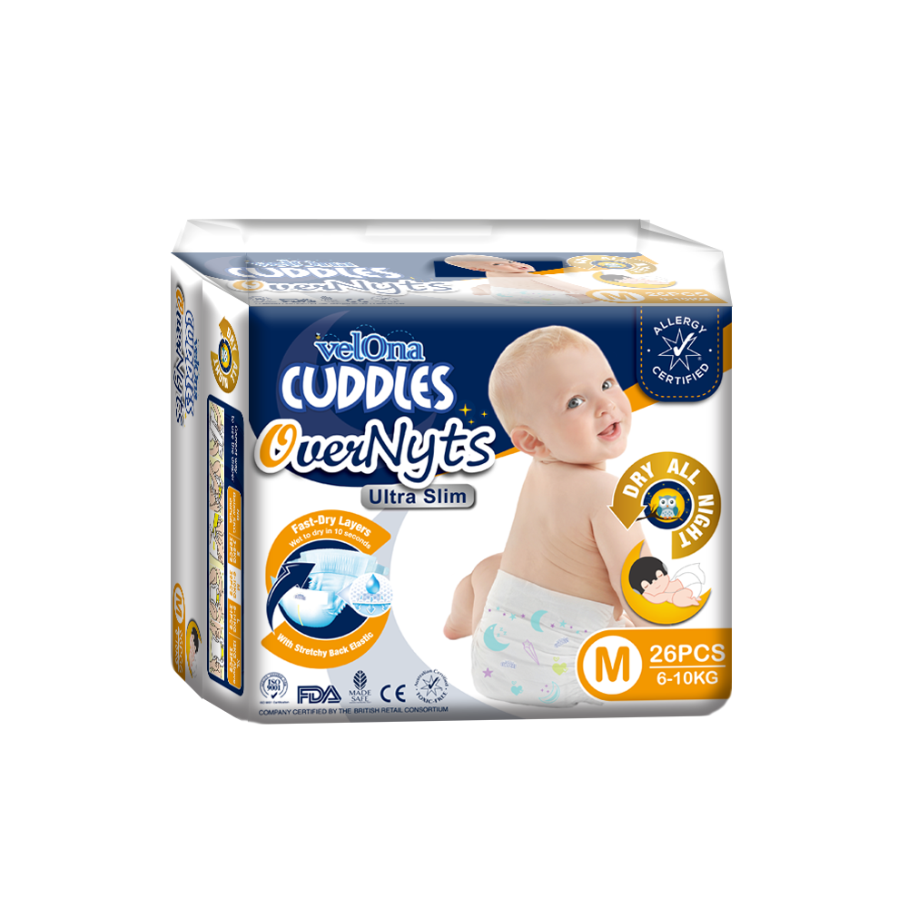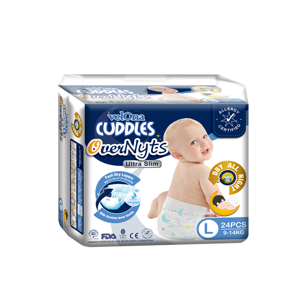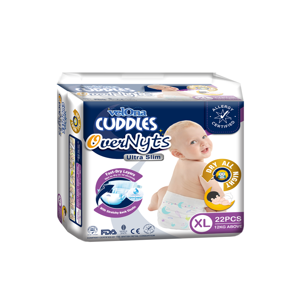 The Velona Cuddles Ultra Slim Overnyts Diaper offers Superior absorbency with upto 12 hours of protection, making it the perfect choice for protection through the night.