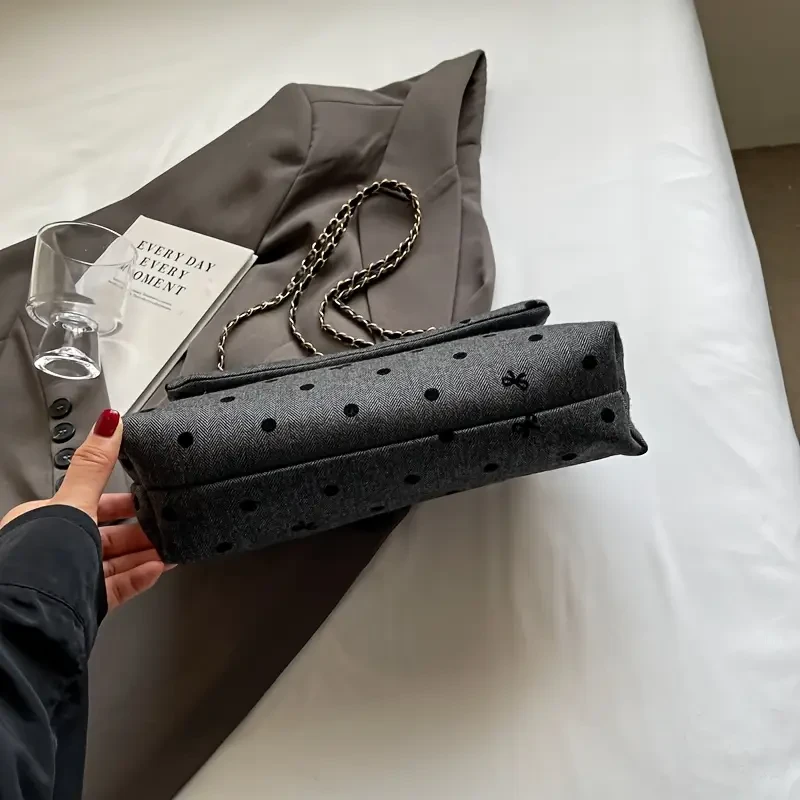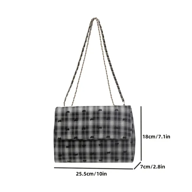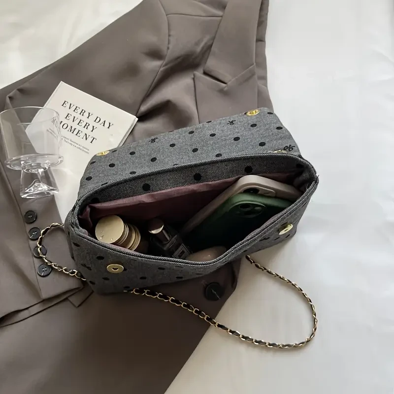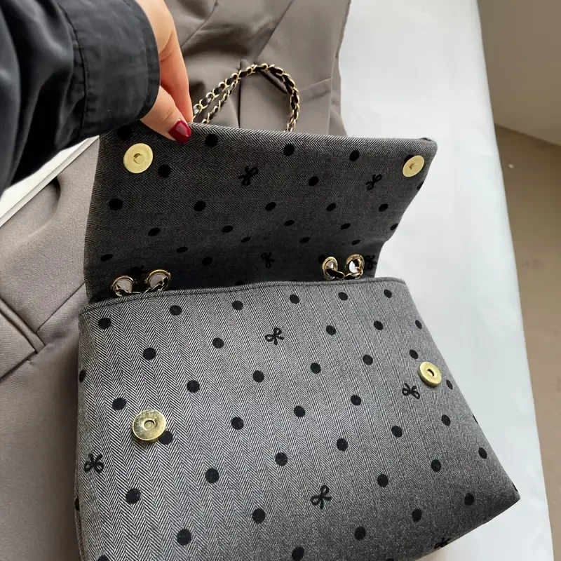 Korean Fashion Plaid Polka Dot Crossbody Bag, Chic Fabric Shoulder Bag with Chain Strap and Magnetic Closure, Polyester Lined, Versatile Top-Handle Purse.