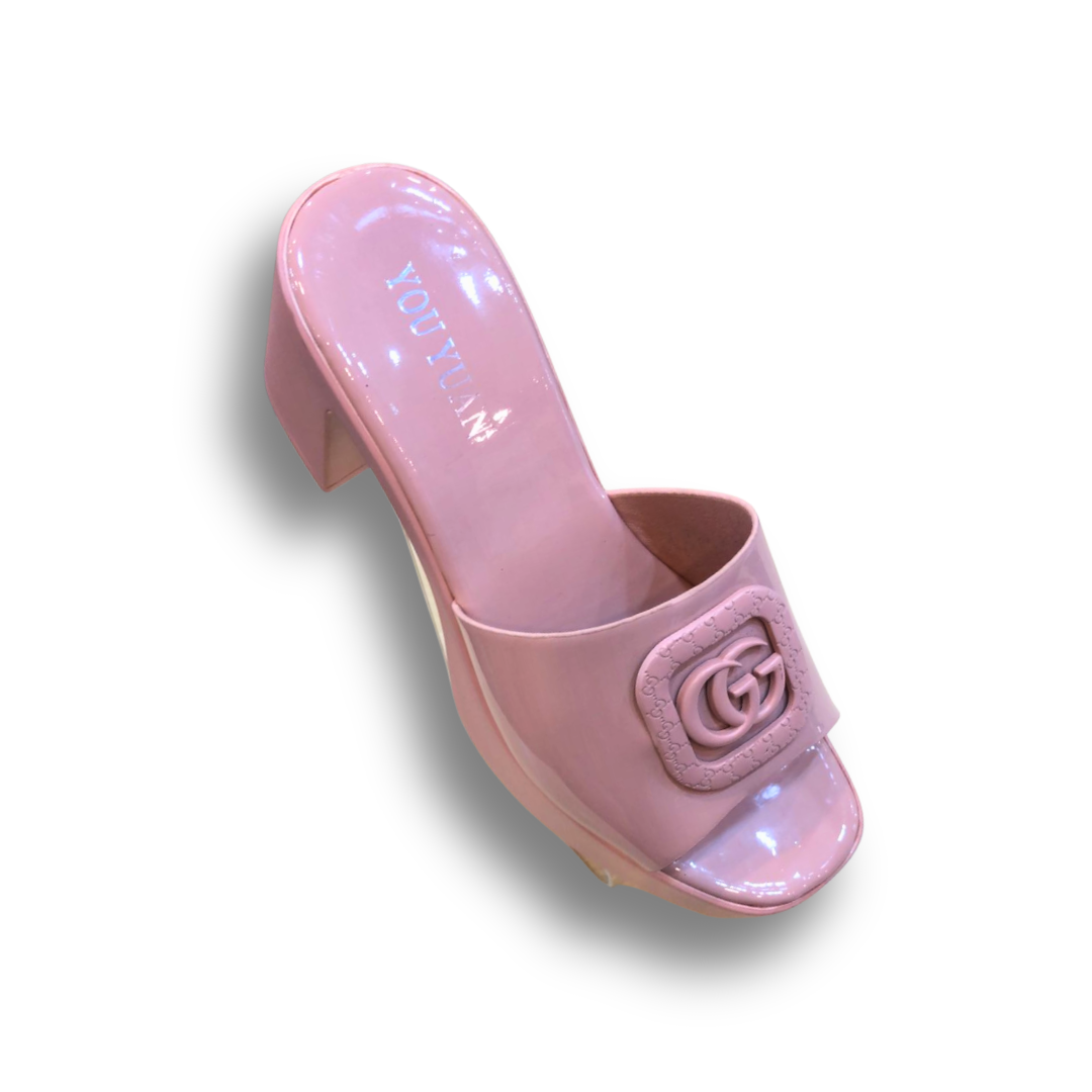 Elevate your style with these chic open-toe block heel slippers. Designed for both comfort and elegance, they feature a glossy finish and a sleek emblem detail. Perfect for casual outings or semi-formal occasions. Available in three stunning colors: Pink, Black, and Hot Pink. Step out in confidence and style.